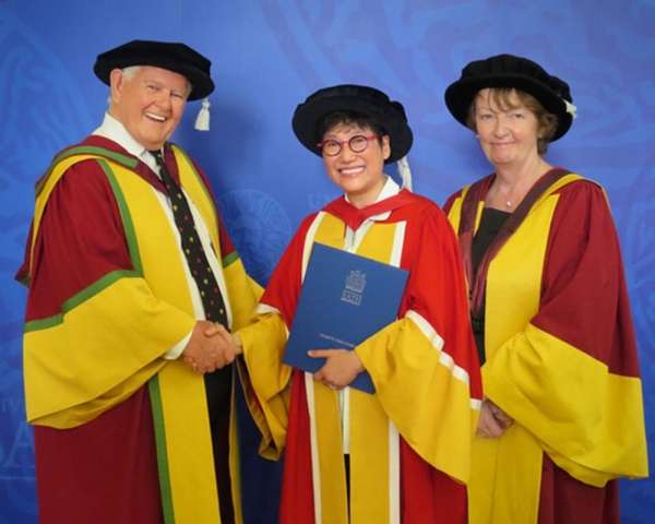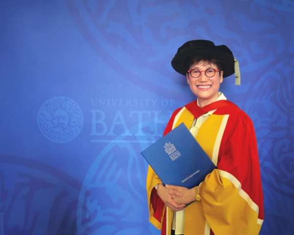 七月初,陈博士前往欧洲,接受英国巴斯大学的荣誉法学博士学位, 成为荣膺世界三大洲嘉许的杰出华裔女性教育家。