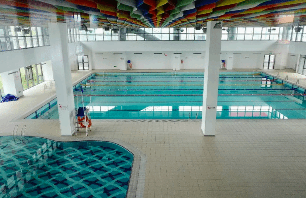 除了标准泳池,学校还有一个水深较浅、专为低龄孩子而设的戏水池。