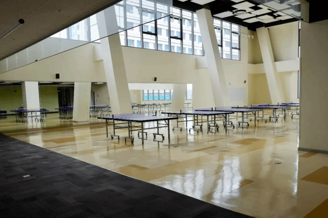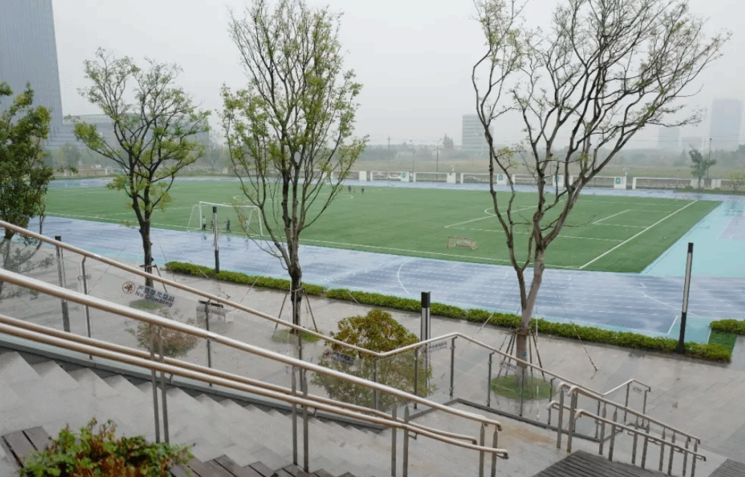 除了篮球之外,室内体育中心配备了专业的健身中心、舞蹈教室、乒乓球桌等。室外同样有足球场、网球场和标准的400米蓝色跑道。