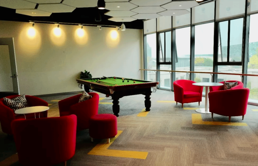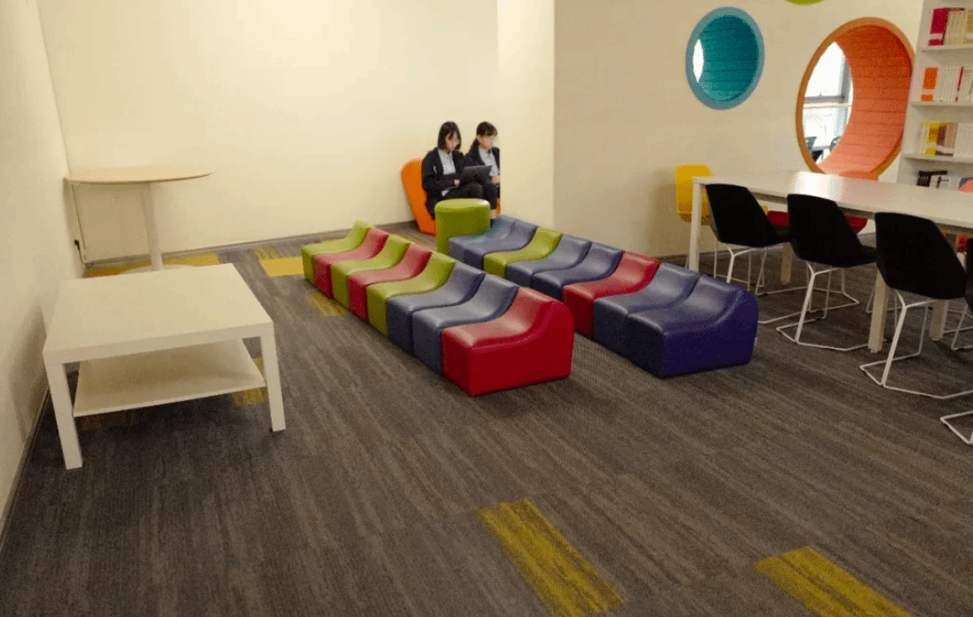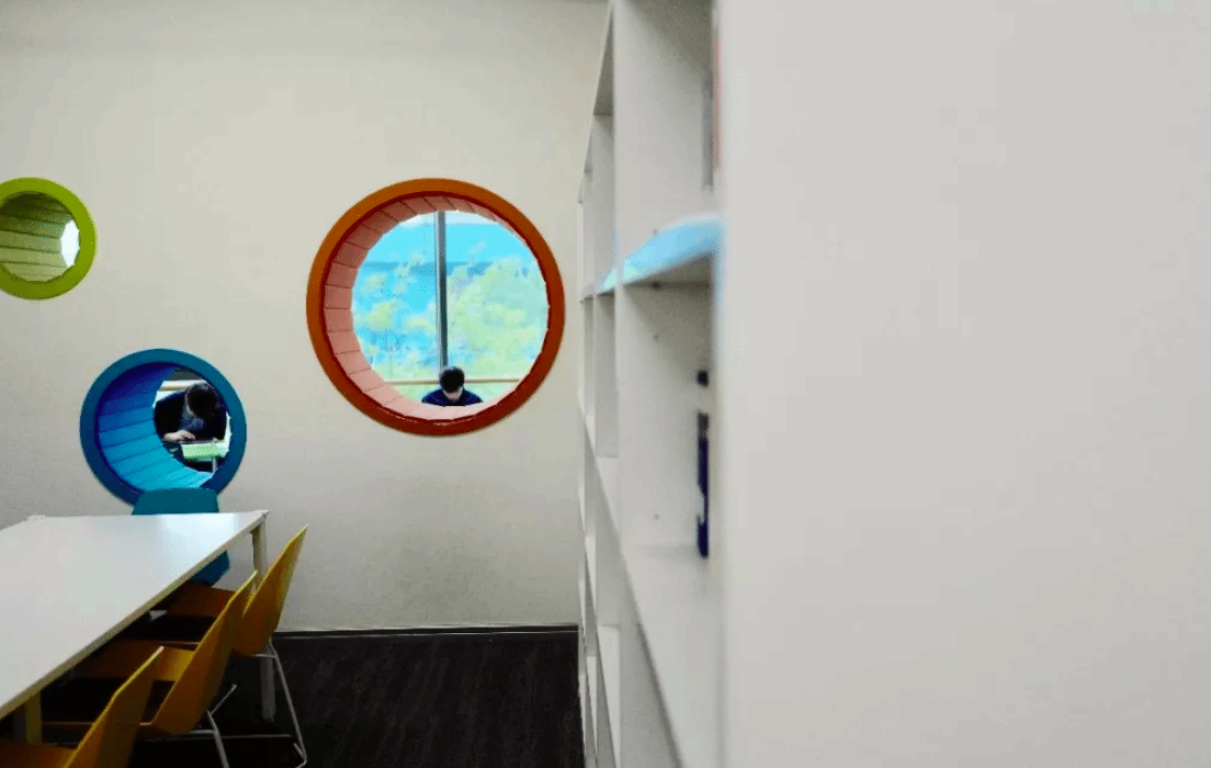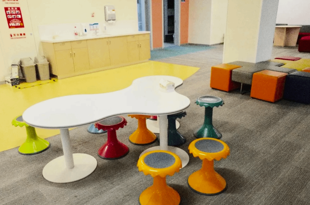 孩子同样有自己的“生活社区”,回到宿舍之后可以在这里阅读,做团队讨论,也可以娱乐放松。