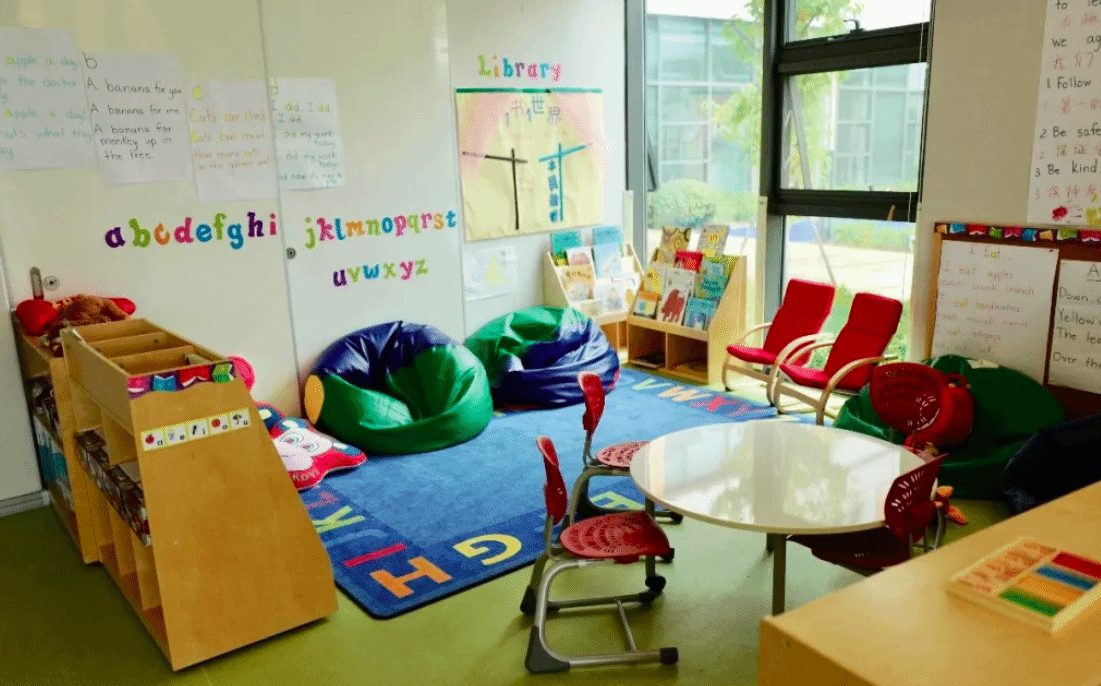 除了幼教阶段的双教师制,中西融合同样也体现在其他年龄段的师资和课程特色上。小学部开始,每个班都有中外两位班主任,会在日常参与班孩子的学业管理。不同于幼儿园段的地方在于,他们会各自教授不同的科目。全外教课堂上也根据需要安排助教。