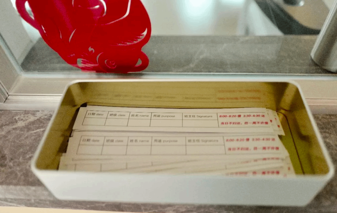 除了宿舍有严格的管理流程之外,电子产品的管理也是很严格的。学校为孩子提供了电脑、iPad等设备可以搜索资料。但像iPad等可以带走的设备,租借需要填写凭证,且学校里所有学生的上网内容是受到监管的。