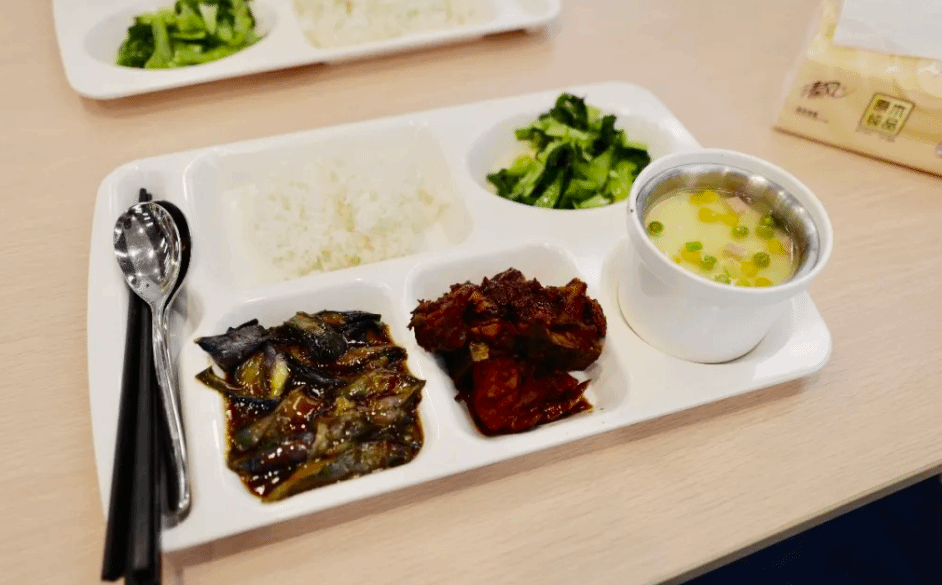 办学多年,耀华在后勤管理上也是制度井然。走入后厨,看到的是合理的洗配分区,用具分类,严格的进货验收渠道和配料存放,就连后厨人员进到明档厨房都有非常严格的消毒规定。厨房的自动洗碗消毒一体机,清洁消毒剂配比都是全进口设备。餐厅每天提供早中晚餐加一顿夜宵供应,同时也提供自制的甜品点心。