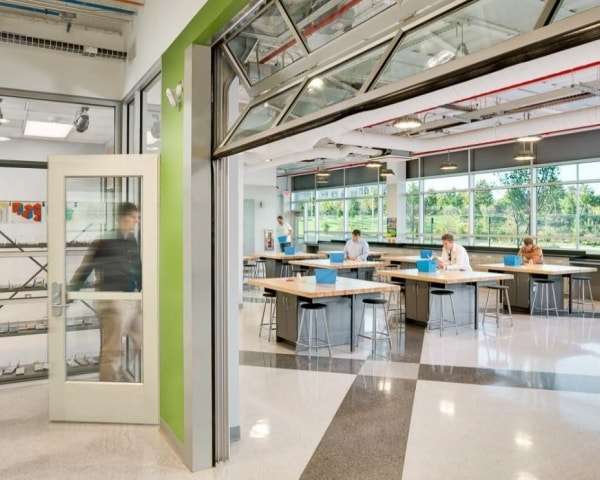 FNI将21世纪开放式教学融入教学环境的设计之中,遵从以学生为中心的原则,注重探究式与跨学科学习,将科学技术运用其中,促进学生间通力协作、促进交流互动——不仅是师生间的,还有学生间的、人与自然间的;学生不再被分隔在格子间里,交流与公共空间存在于每一个空间层级,并满足不同学生的个性化学习需求。