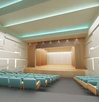 礼堂结构已封顶;正在进行室内地面找平,吊顶施工、强弱电施工,空调新风管道安装、礼堂天花施工。