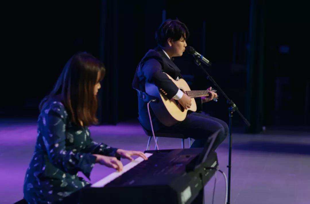 为梦想灼伤了自己/也不要平庸的喘息/我要的并不在这里/你给的答案没意义”——七年级David主唱、五年级Jerry伴奏,《都选C》(《缝纫机乐队》电影插曲)