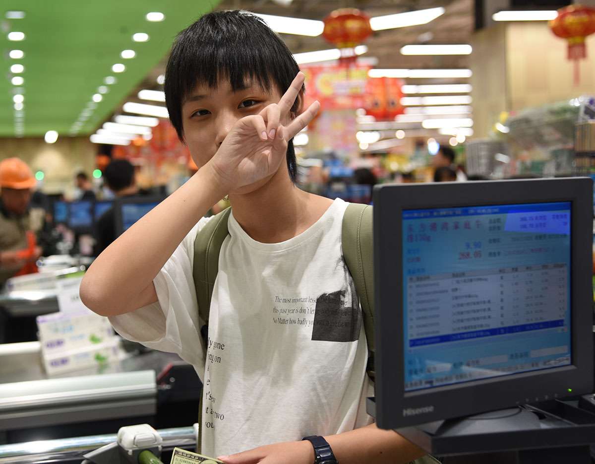 寄宿生在永辉超市进行了一场“超市大赢家”比赛。同学被分为三组,每组分配500元“耀华币”作为购物资金。老师要求他们去采购一周日常用品,并用英文列出购物清单。最接近限额且列出合理清单的一组可以选择在哪里享受午餐。