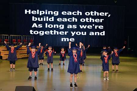 小小毕业生在全校师生的注视之下,一一从校长和学部主任手里接过毕业证书,这一刻,他们结业了!也意味着他们即将踏入另一段精彩的学习之旅。