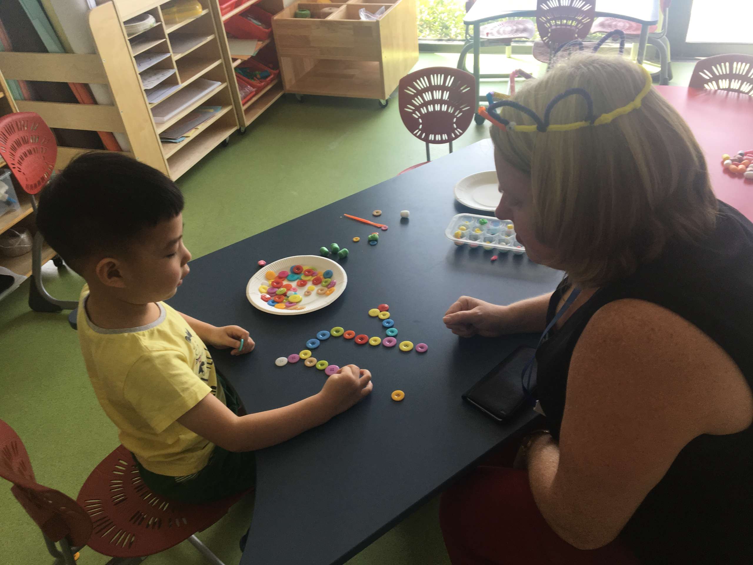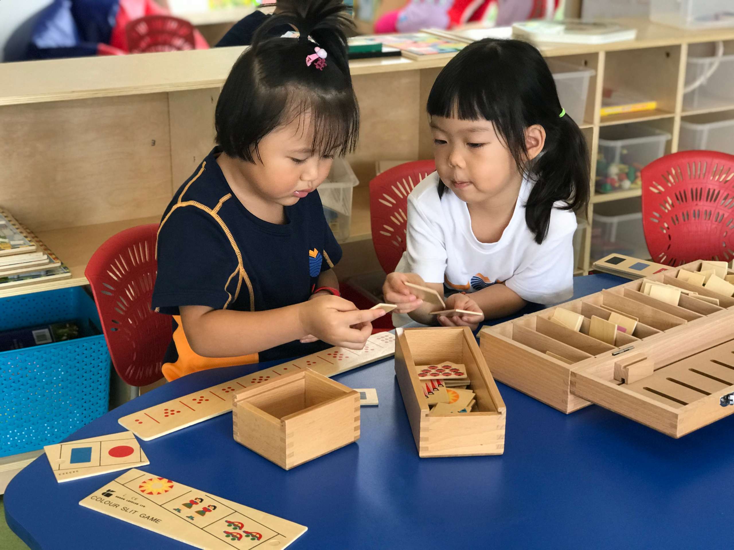 我们的教室布局是“开放”的,允许儿童自由、安全地活动,鼓励他们与人、材料和活动接触,并且设有符合不同学习兴趣和发展需要的区域、角落,每个区域或角落都配备不同的活动材料。