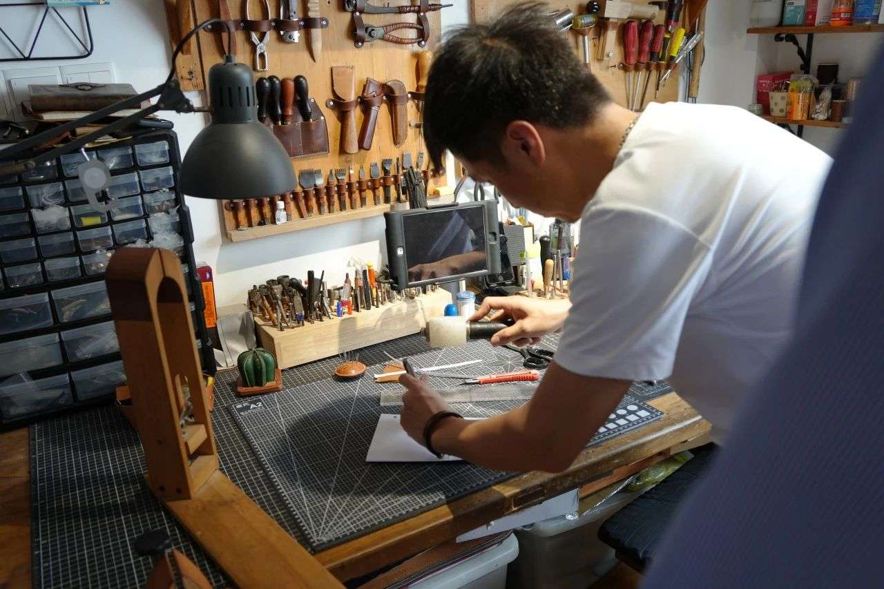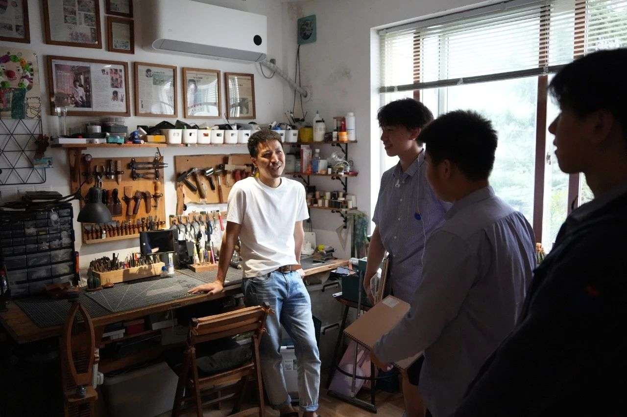 同时,工匠老师还向同学们介绍了一些亲手制作的精美皮革产品,对几位同学的关于皮革包具的设计作业也进行了指导,并从工具、选材、实用性等方面提出了针对性的建议。