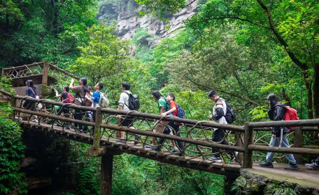 研学之旅的最后一站是壮丽的碧峰峡,学生们徒步穿越青翠的碧峰峡,与大自然进行了亲密的接触。