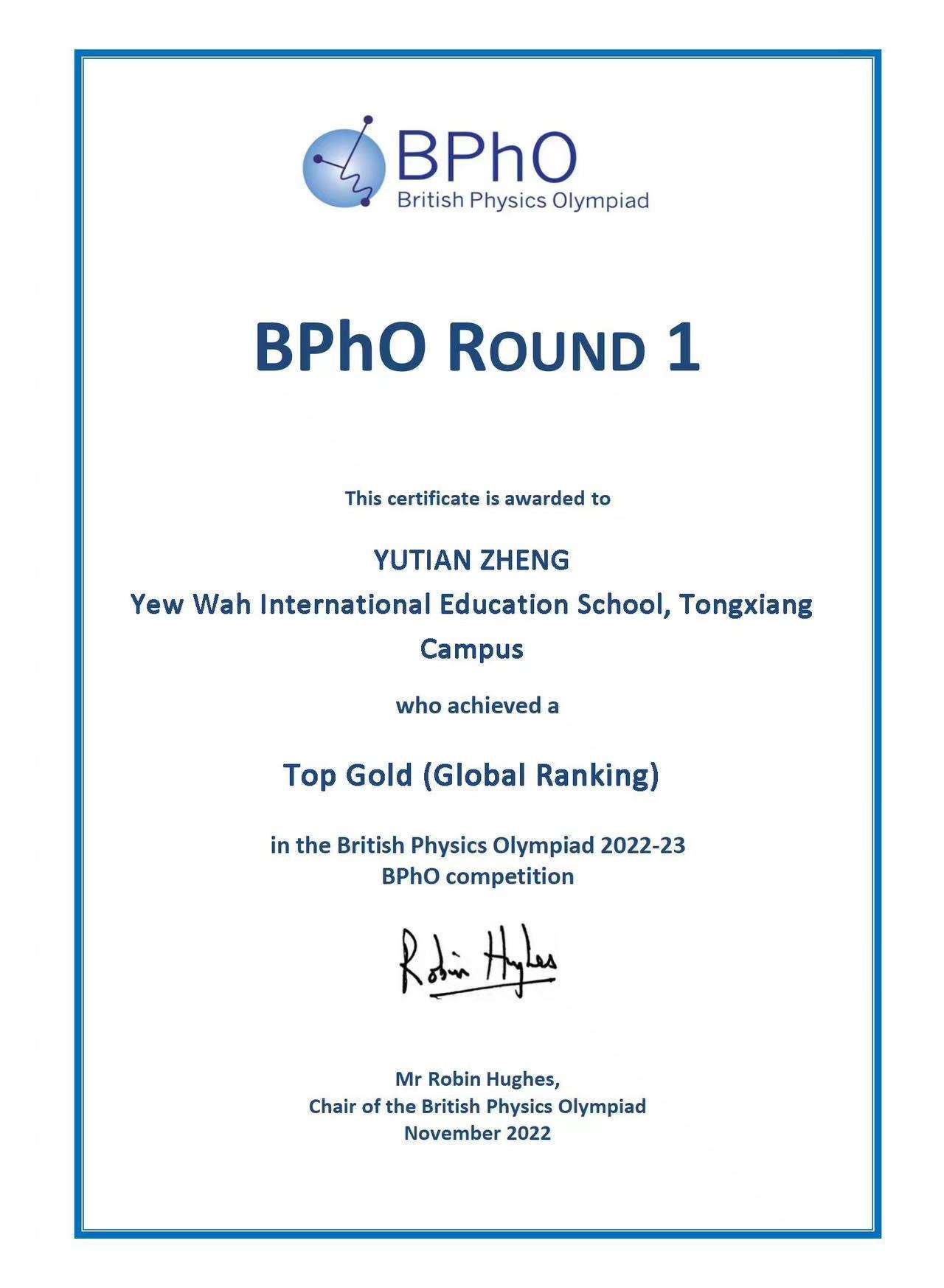 近日在“MAA AMC”和”BPhO“这两场含金量很高的国际竞赛中,桐乡耀华11年级的郑喻天(Daniel)同学在比赛中发挥出色,一举拿下两块金牌,成为双料冠军。
