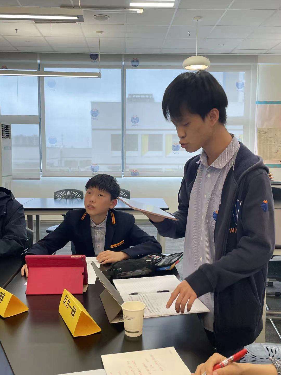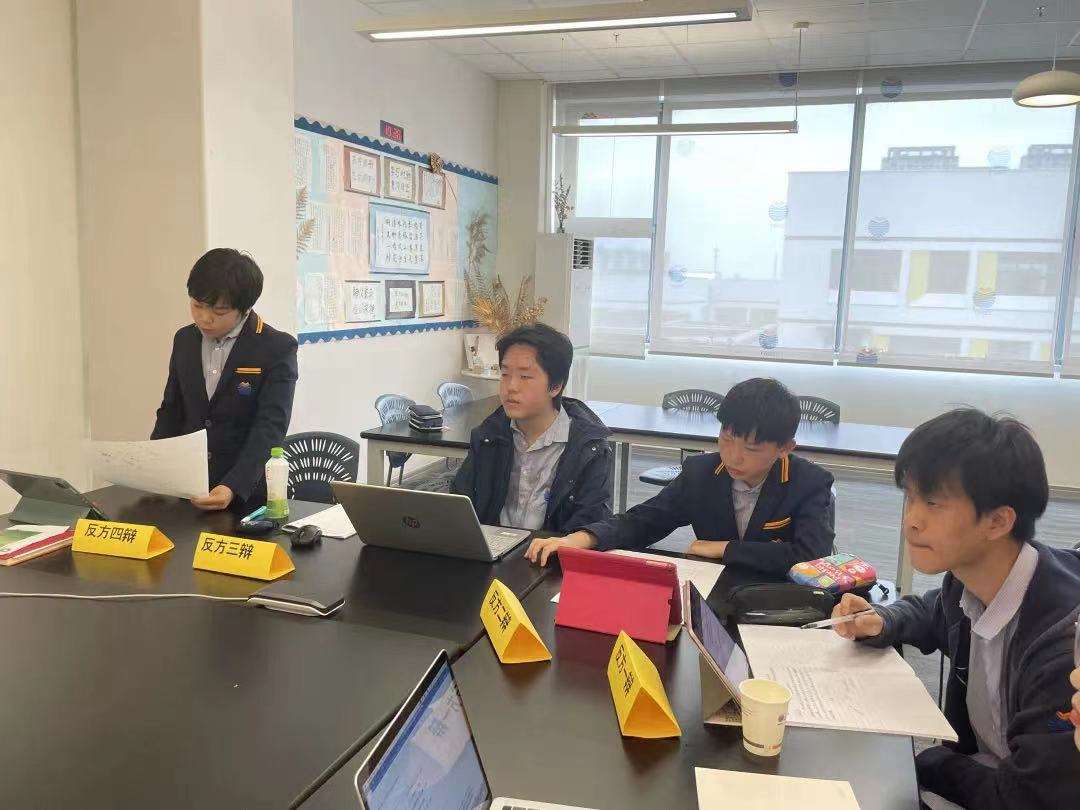此次辩题,正方的观点是“为追求伟业而付出重大牺牲是值得的”。这与传统的普世价值相契合,我们的学生也是在这样的教育环境和价值倡导下中成长起来的。但在辩论中我校持反方立场,这就需要学生挑战既有的认知,尝试从不同角度看世界。面对挑战,学生们毫无畏难情绪,在老师的带领下,积极投入该持方的应辩准备。