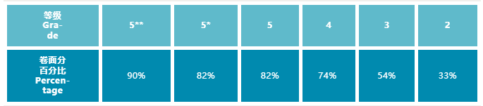 这意味着,如果学生在数学卷面分中获得82%以上的正确率,就能被评为Level 5*,无论有多少学生能达到这个水平。