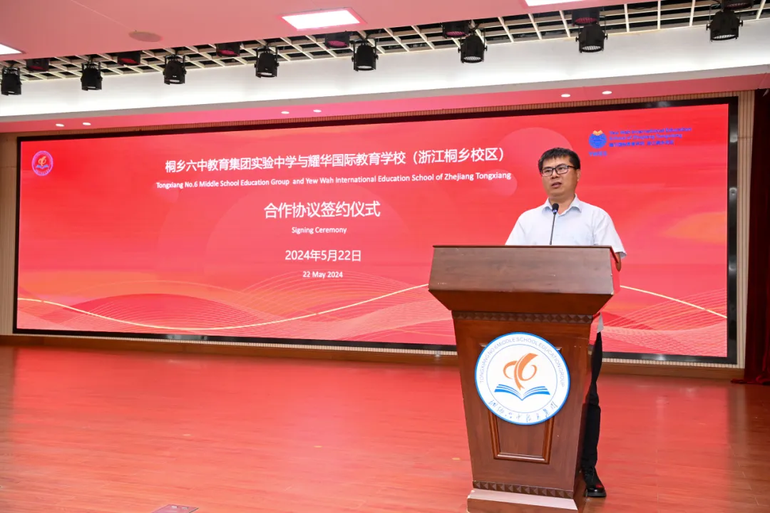 近日,在教育协同发展的春风中,耀华国际教育学校浙江桐乡校区与桐乡六中教育集团实验中学(以下简称,六中实验中学)正式签署教育合作协议,并在六中实验中学成功举办了合作协议签约仪式。这次合作标志着两校将在教育资源共享、教学方法创新、学生综合素质提升等方面展开深度合作,共同探索教育高质量发展的新路径。双方本着强强联合、共促优秀教育资源辐射作用和满足地区吸引保留高端人才的需求。