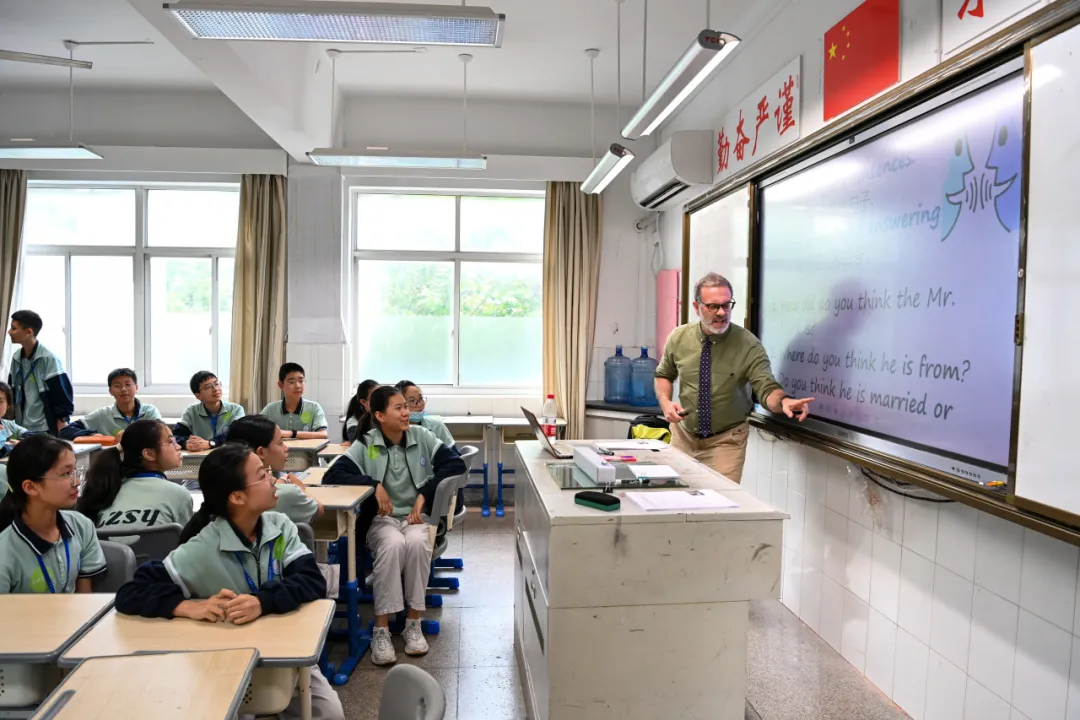 我校外籍教师,视觉与表演艺术组教研组长Man Cheung先生和中学部英语组教研组长Mark Jacobson先生,应邀为六中实验中学的学生们带来了两节外教体验课。
