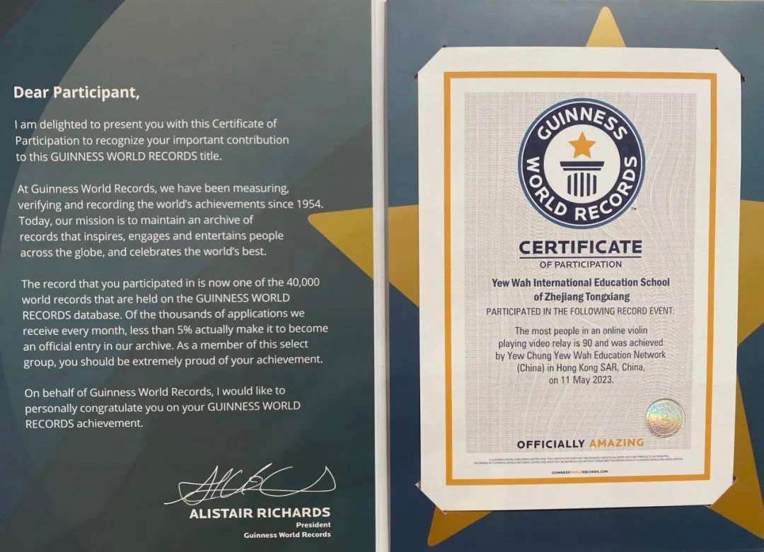 本学期,耀中耀华教育网络举行“创造吉尼斯世界纪录TM荣誉——最多人参与的演奏小提琴视频接力”活动。全国各地10所耀中耀华教育网络学校的师生参加了本次活动,每位参加者独奏小提琴30秒,内地校区的参加者通过线上视频接力形式进行。桐乡耀华小学部8位师生共同参加了本次活动。