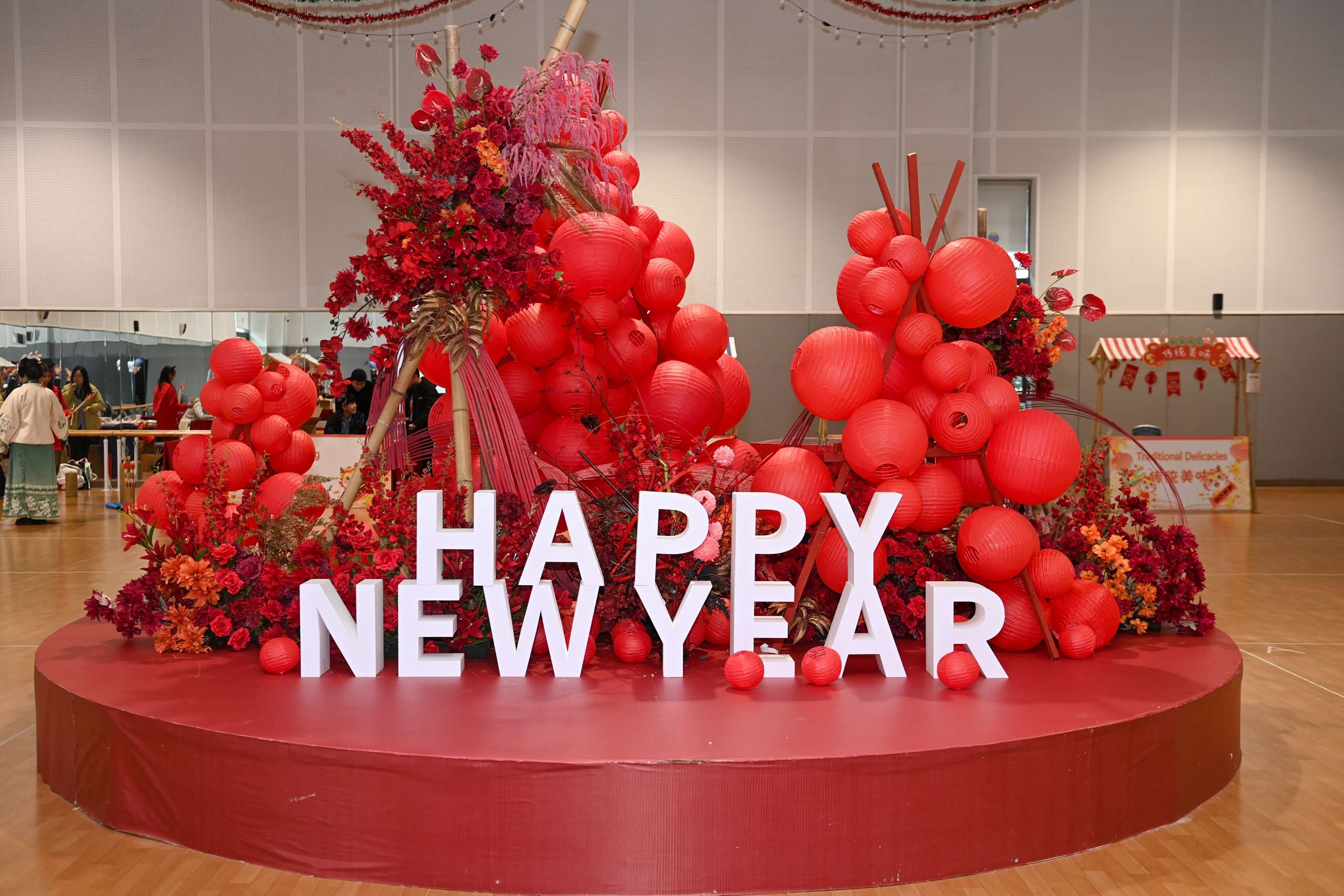 这次春节游艺活动以中国年为主题布置,整个会场共设有18个活动摊位,其中包括民间传统游艺活动、文化体验展示和中华传统美食。