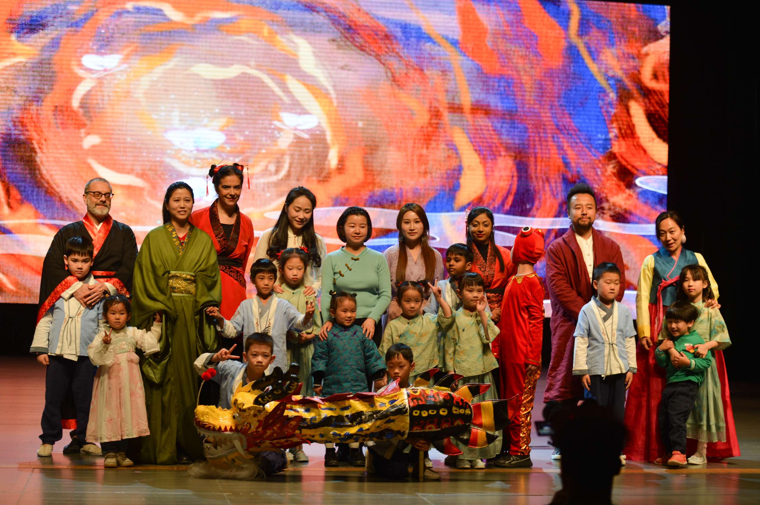 我们的新春盛典,节目精彩纷呈。学生们用舞蹈、歌曲、乐器演奏、舞台剧等多种表演形式为观众呈现了一场精彩的视听盛宴。他们自发组织编排的节目,融入了中国有名的典故和历史故事,展现了他们对历史的思考和对传统文化的理解。例如,学生们通过表演秦汉《汉乐府》、魏晋南北朝《木兰诗》等历史剧目,生动地展现了中国历史上不同朝代的风貌和文化。同时,家长们也积极参与其中,身着中国各朝代服装,展示自己的时尚风采,在时装秀中与孩子们一同闪耀舞台。