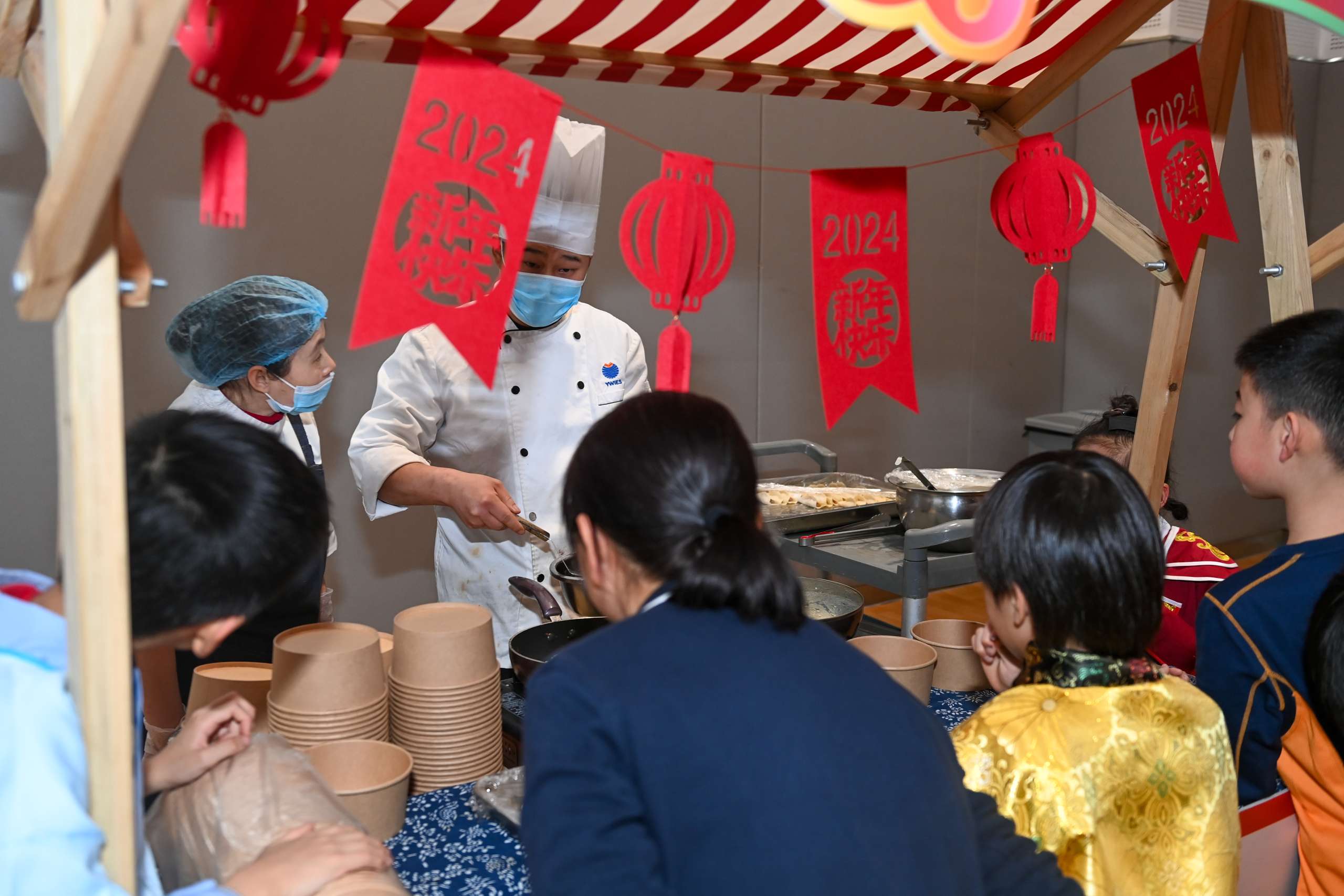 当然,还有中华传统美食摊位,提供各种传统美食的品尝,如八宝饭、煎饺、糖葫芦等,让同学们通过味觉感受中国年的美好和传统节日的氛围。