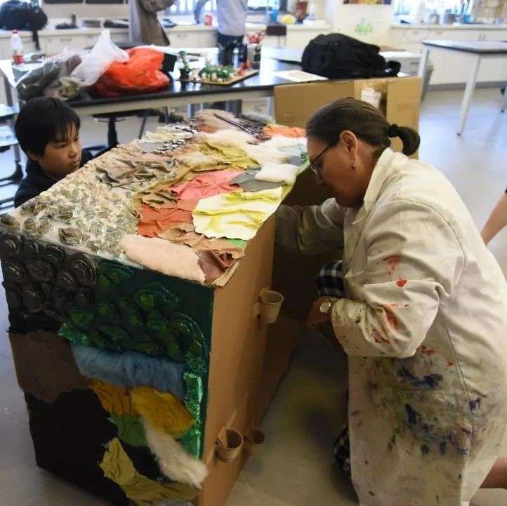 -一年以前我们就开始着手准备这个作品了,我们收集了很多废弃的材料,如布料、皮料、塑料、泡沫、纸板等,我们将这些材料进行裁剪、拼凑、粘贴、上色,最终创作出了这样一个比较抽象的艺术作品。它的立意在于我们用颜色鲜艳的装饰和生机勃勃的植物来表达“生”的概念,用颜色灰暗的装饰和已经枯萎的植物来表达“死”的概念,“生”是代表“保护环境”,“死”是代表“破坏环境”,中间的镜子是用来让每位观展者审视自己,现在需要他们做出自己的选择,从内心深处去选择到底是 “共同保护环境”还是“继续破坏环境”。