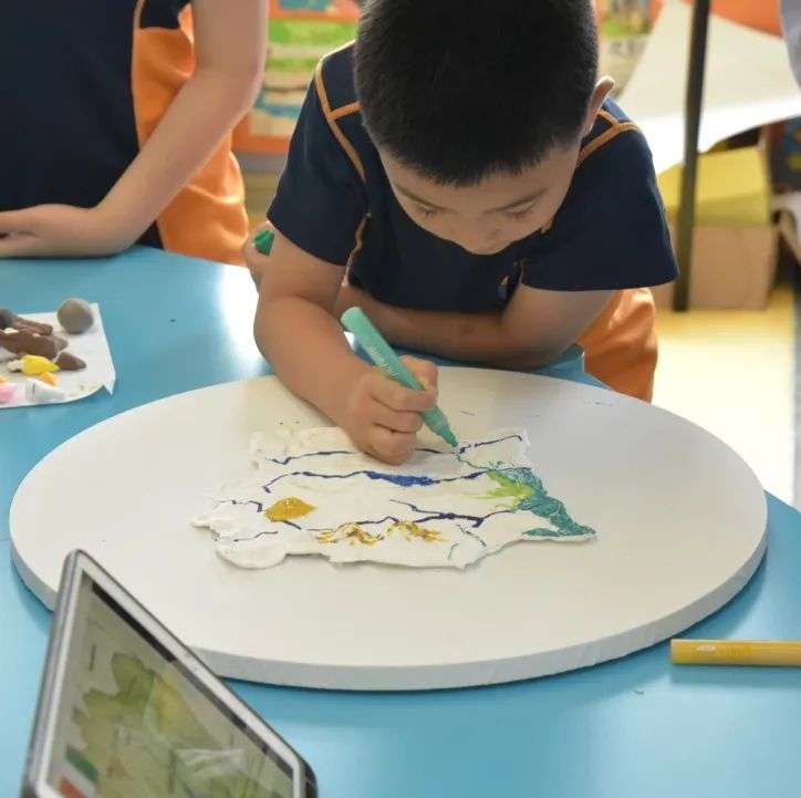 在主题课上,孩子们学习了与可可豆种植地有关的地理、生态知识。通过查找各种资料了解了种植可可树的雨林生态系统,以及可可产业对雨林生态系统的影响。并用黏土材料制作了可可豆种植地的3D地图。