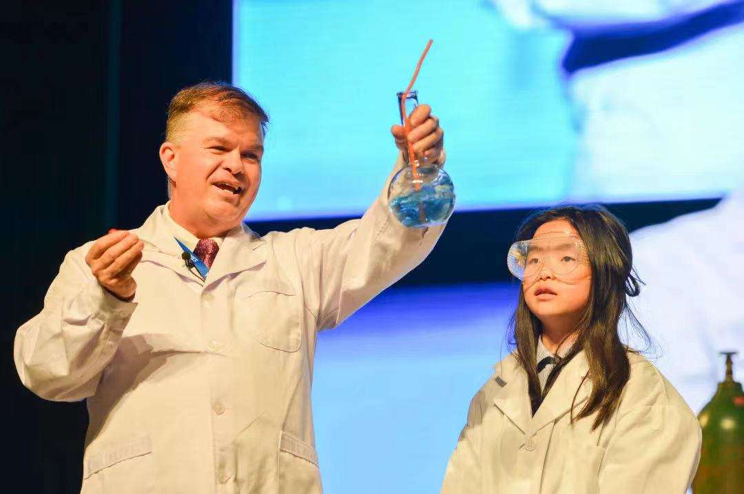 我们很荣幸的邀请到了耀中耀华教育创新与联盟主管Christopher Hurley博士为孩子们带来了一场精彩绝伦的“科学表演”。Christopher Hurley博士通过三个非常有意思的小实验,将其中蕴含的化学和物理知识具象化展示给学生,让学生们在视觉和听觉的震撼中理解并掌握这些科学原理。