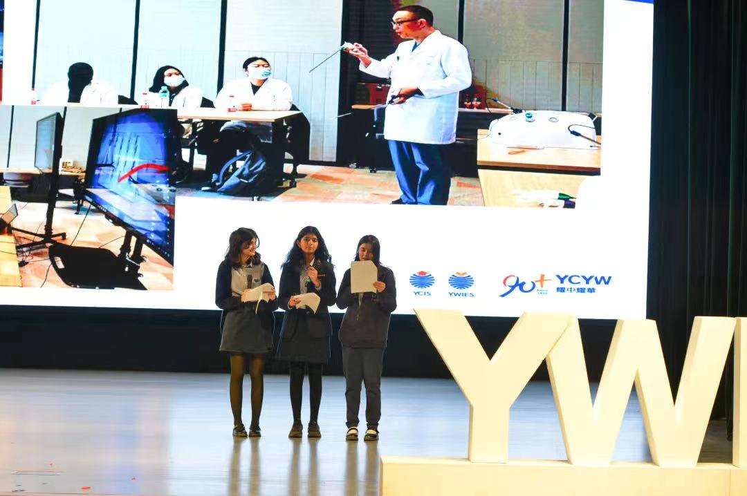 学生向全校同学普及在流浪地球1和2中出现的三个关键物理知识点:洛希极限、氦闪以及相控阵。(指导老师:Theo FENG, Lily YUAN)