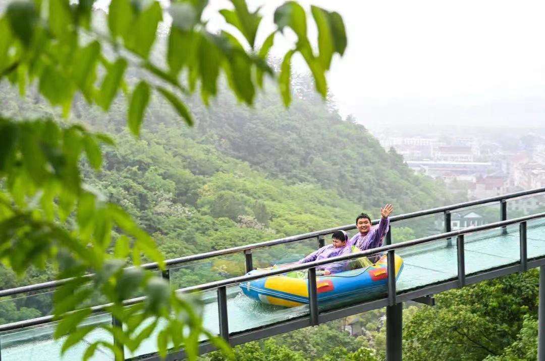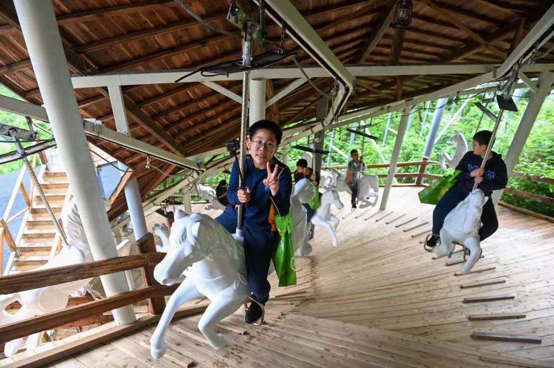 挑战完玻璃云廊,我们一起乘坐“天马”,奔驰在山林间,从山下“奔腾而上”对同学们来说也是一种不小的挑战,特别是低年级的同学,但他们都成功克服了。