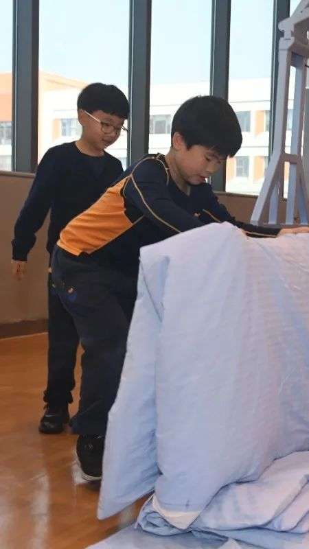 这个区域内设有混乱的床铺、衣物、文具等物品,学生可以依次去不同的地方将物品按照要求收纳和整理。整理床铺涉及到了数学书中的归纳与整理的章节,整理文具与书籍则与正在学习的统计知识相挂钩,而通过对书本和文具分类整理以及库存数量的记录,更是可以锻炼同学们的统计计算能力。