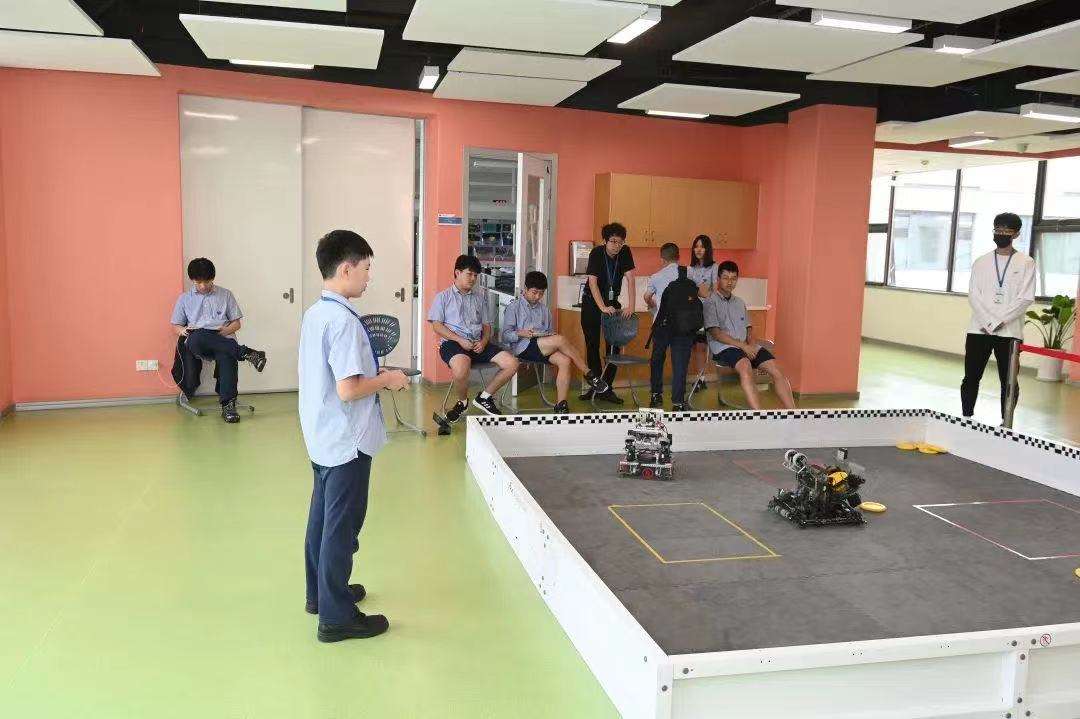 在学校的五楼训练场地上,学生们每周四周五会花费大约两个小时的时间,专注地操纵机器人进行练习。通过手动操控机器人,他们可以深入理解机器人的运行原理,同时也可以逐渐熟悉各项技能。