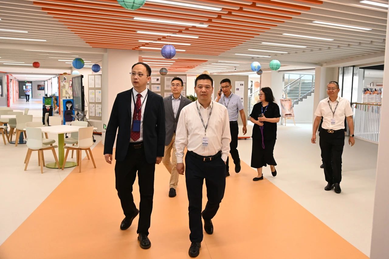 蓝亚民书记一行实地参观了学校的教学楼及未来学校设施,深入了解了学校的办学理念、设施配套及发展规划。在参观过程中,桐乡耀华学校华籍校长梅爱冰先生向蓝亚民书记详细介绍了耀中耀华教育网络九十余年的办学历史,"融汇中西"的办学理念,以及桐乡耀华的具体办学情况。
