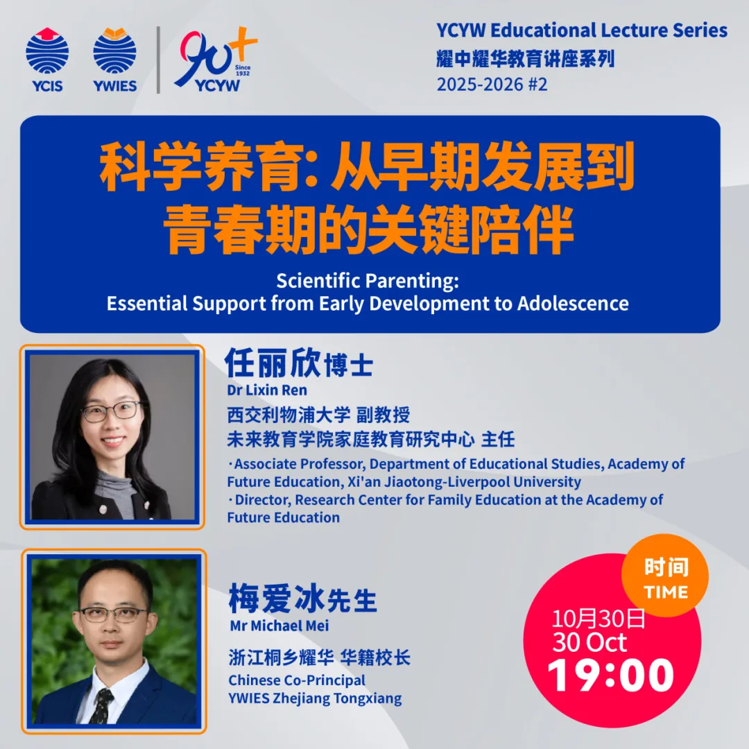 耀中耀华作为中国国际化教育的先行者,通过其“当代教育的挑战与突围”公益讲座系列,持续搭建高层次对话平台,为广大家长提供前瞻性的教育理念与实践指导。敬请关注耀中耀华教育讲座系列“当代教育的挑战与突围”,将持续为您带来前沿的教育理念与实践分享。