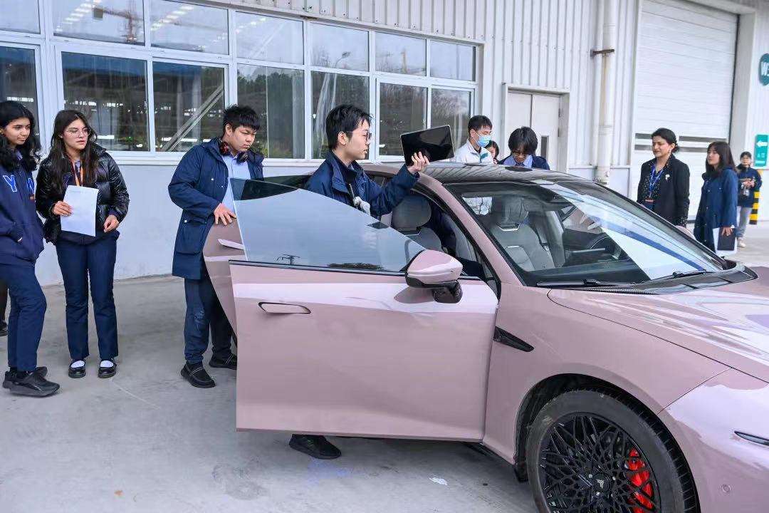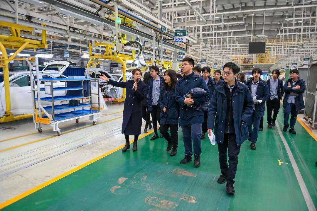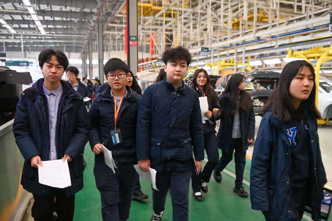我校商务和经济系的学生首次前往哪吒汽车工厂进行研学活动。抵达工厂后,大家都对哪吒工厂庞大的生产设施感到惊奇。在哪吒的工作人员热情地带领下,老师和同学们参观了工厂的汽车装配线,看着一条条具有先进自动化的装配线,老师和同学们都感到惊讶,被这些曾经只在书本和互联网上看到的场景所深深吸引。让同学们感到最有趣的部分是大家都轮流在哪吒 S和哪吒 U上进行了一次有趣的驾驶体验。